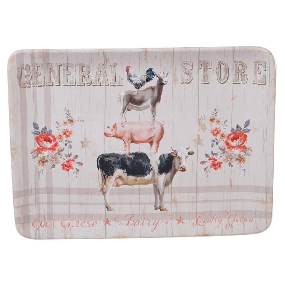 Visit a country farm with Certified Internationals Farmhouse dinnerware and serveware designed by Danhui Nai. Beautifully painted farm animals are featured on woodgrain with floral and barn red accents. Add the 3-d cow cookie jar and S&P to complete this simple farmhouse look