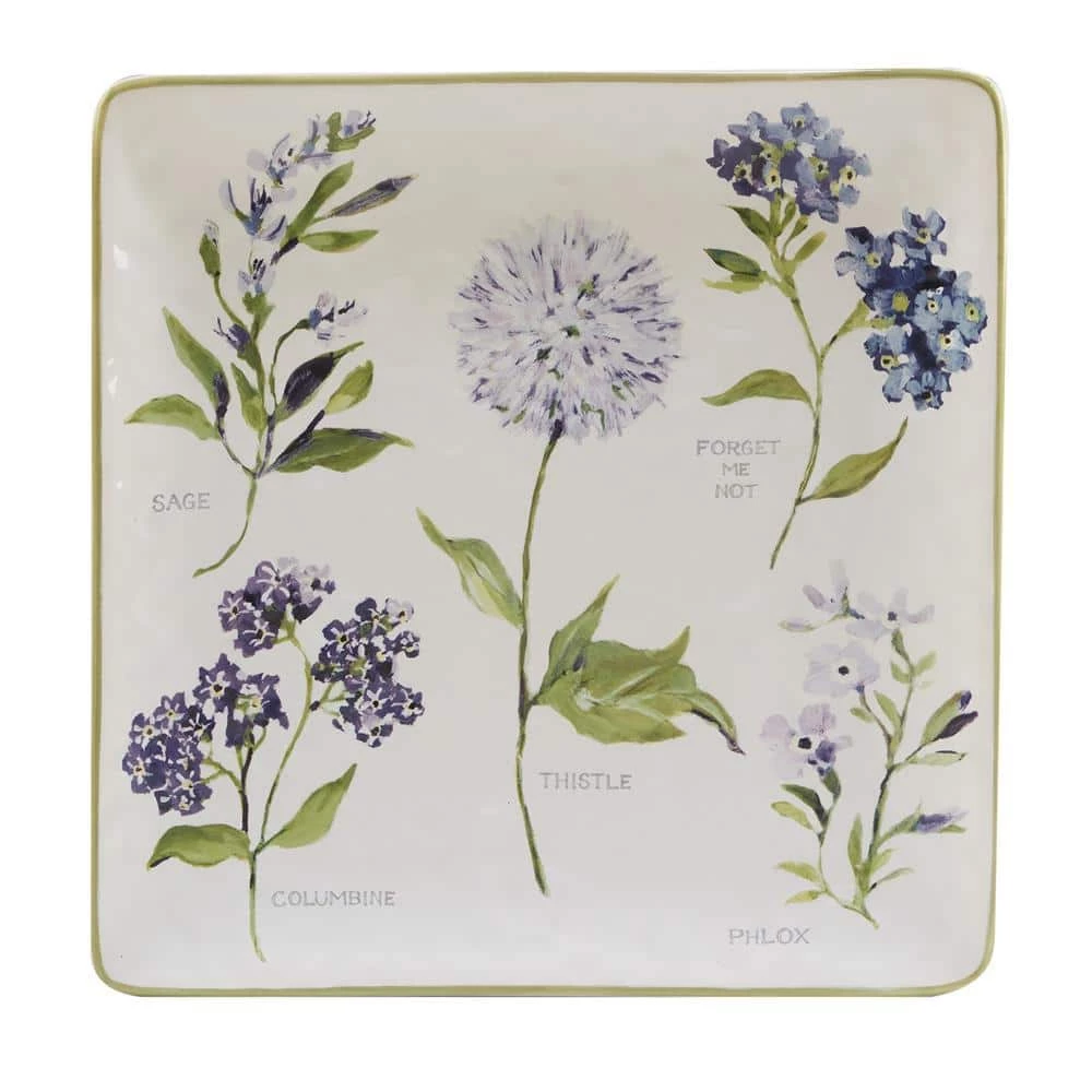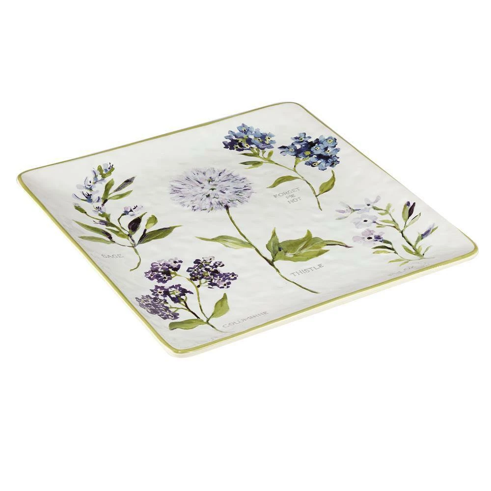 Beautiful green herbs with colorful accents decorate Certified International’s “Fresh Herbs” Square Platter designed by the popular artist Susan Winget. Assorted unusual herbs including phlox and columbine adorn this 15 in. ceramic Square Platter. This generously sized platter is great to use for serving or as a charger. Coordinates with dinnerware sold separately to add even more spice to your table. Be sure to get the matching serveware to complete this “fresh” look.