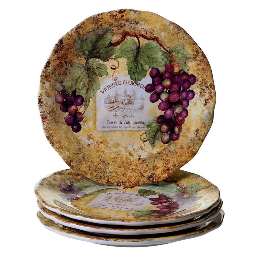 - Charming grape and vineyard design dinner plates create a stylish table setting, coordinating with other kitchen accessories