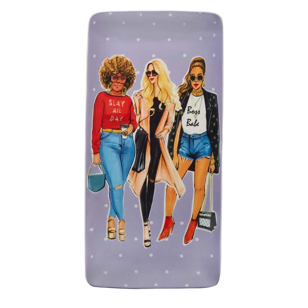 Celebrate women and diversity in a chic way with Certified International’s “Girlfriends” Rectangular Platter from Certified International. Designed by the lifestyle brand artist Rongrong DeVoe, this 12 in. long X 6.25 in. wide ceramic Platter is perfect for serving your favorite foods. Focused on empowering women of all colors, shapes, sizes, these illustrated ladies are fun, confident, caring and love wearing colorful, trendy outfits while conquering the world. Great for birthday, hostess or shower gifts.