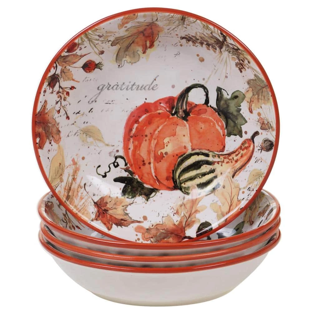 Pumpkins are the feature in Harvest Splash, a colorful mix and match collection of ceramic dinnerware and serveware from Certified International. Designed by Susan Winget, the many layers in this mix and match collection include watercolor pumpkins, solid color dinnerware, embossed serveware and 3-d accessories like pumpkins, turkeys and leaves. The turkey platter is a beautiful addition to your holiday table.
