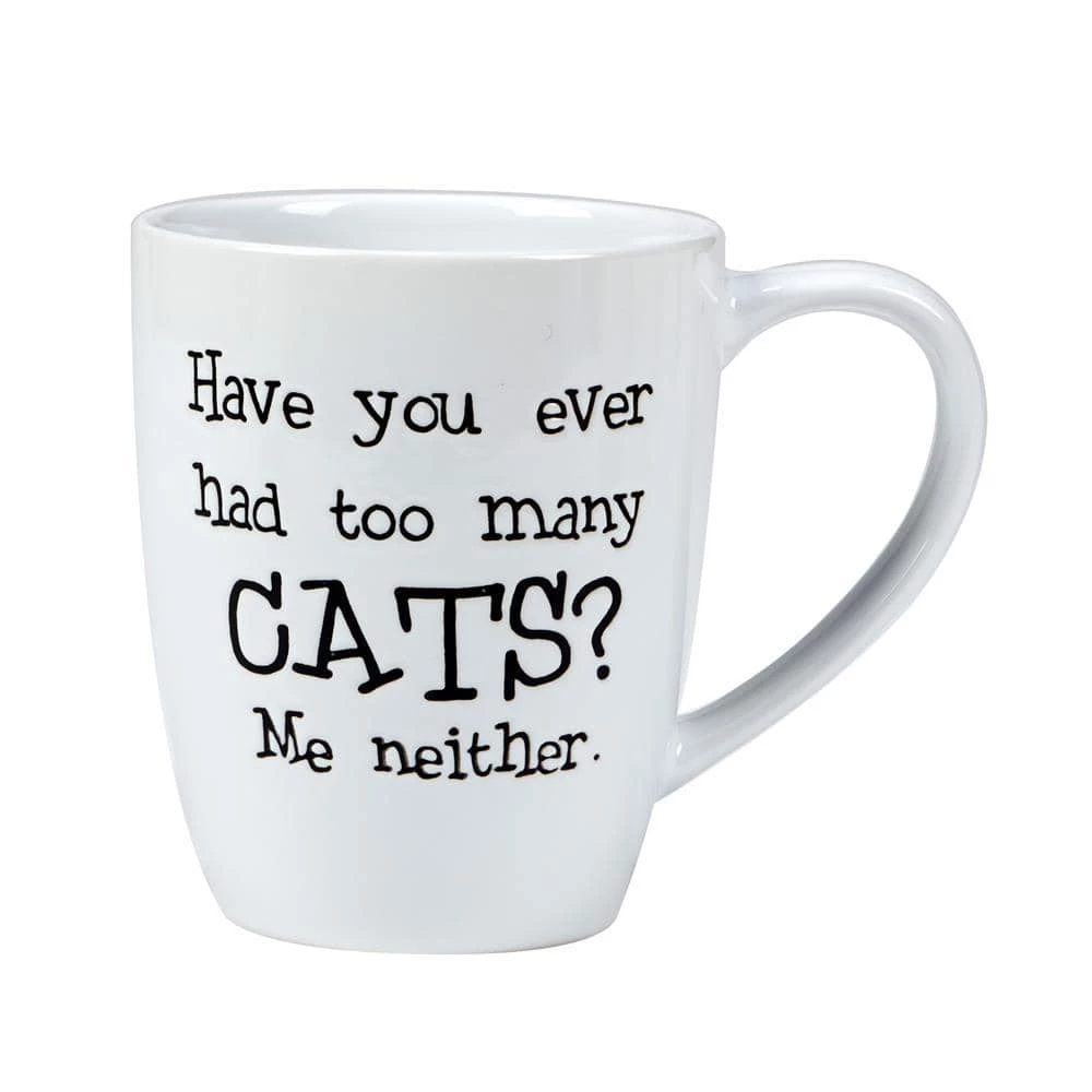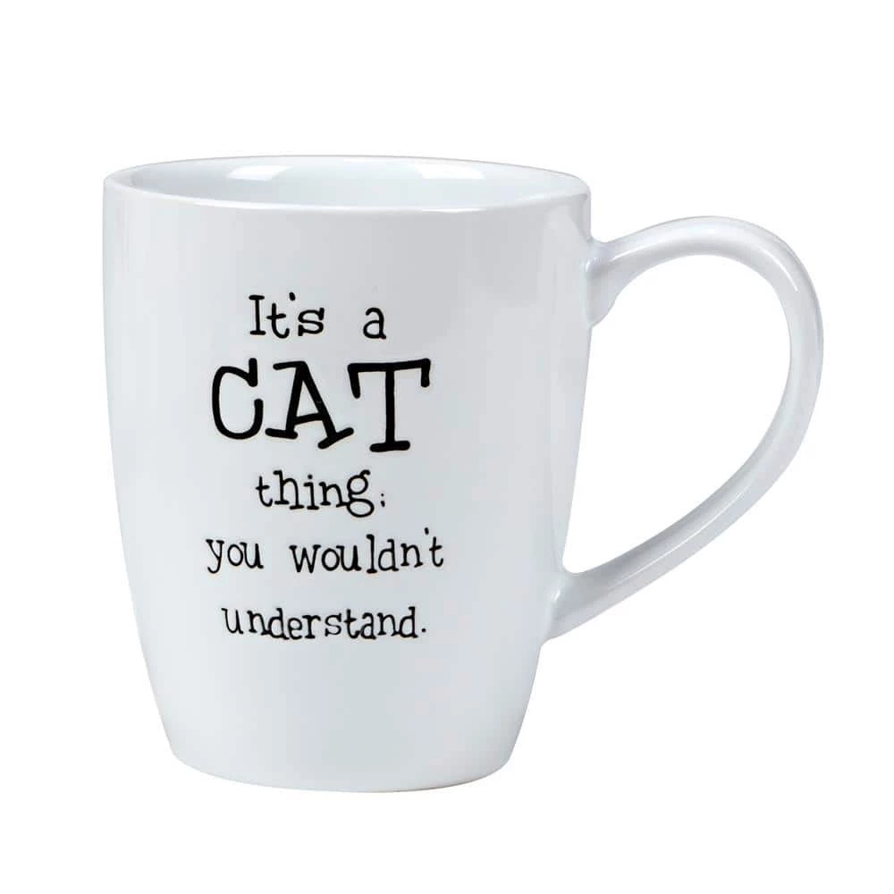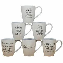 Co-edikit “It’s All in the Cattitude” 6-assorted mugs set from Certified International feature 6-different sayings for the cat lover. These clever cat sentiments in black on 21 oz. capacity white glazed ceramic mugs are perfect for enjoying your favorite hot beverage and a daily laugh with your cat. Great for birthday, hostess or shower gifts for the cat lover.