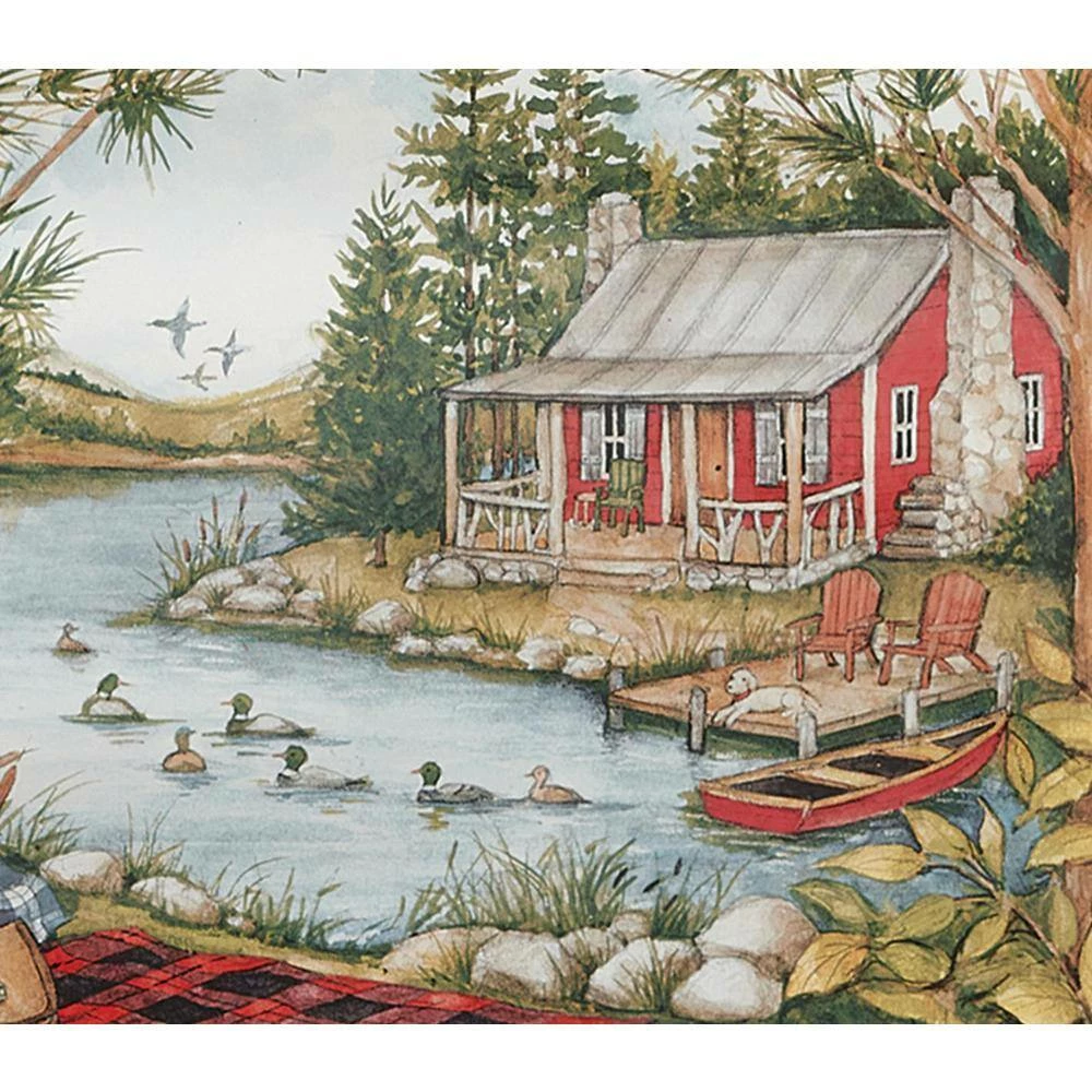 Remember that peaceful day at the lake with Certified International’s “Lake Retreat” Rectangular Platter designed by the popular artist Susan Winget. Enjoy the beautifully detailed lake view on this generously sized 14 in. L X 10 in. h ceramic platter, perfect for serving family meals. Coordinating dinnerware, serveware and a 3-D Pet Dog Cookie Jar is available to complete the look of a rustic forest in your home.