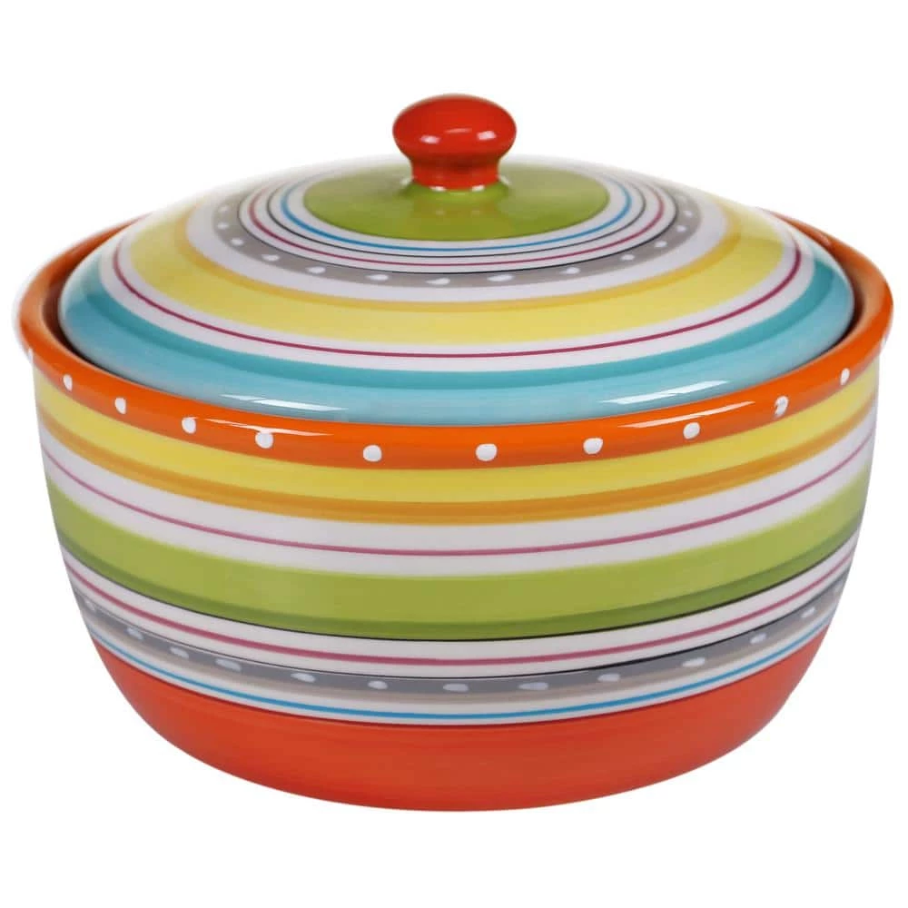 Spice up your meal setting with this mariachi 2 piece bean pot set from certified international. It’s a perfect way to bring the festive fun of a mexican fiesta to your table. Made with durable earthenware that is glazed in bright energetic colors.