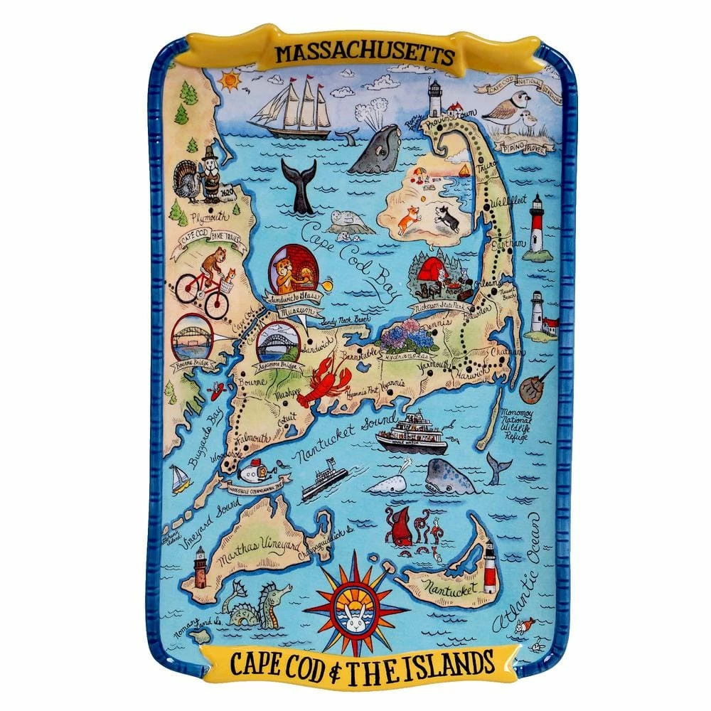 Massachusetts Souvenir 13 in. x 8 in. Multicolored Earthenware Rectangular Platter by Certified International