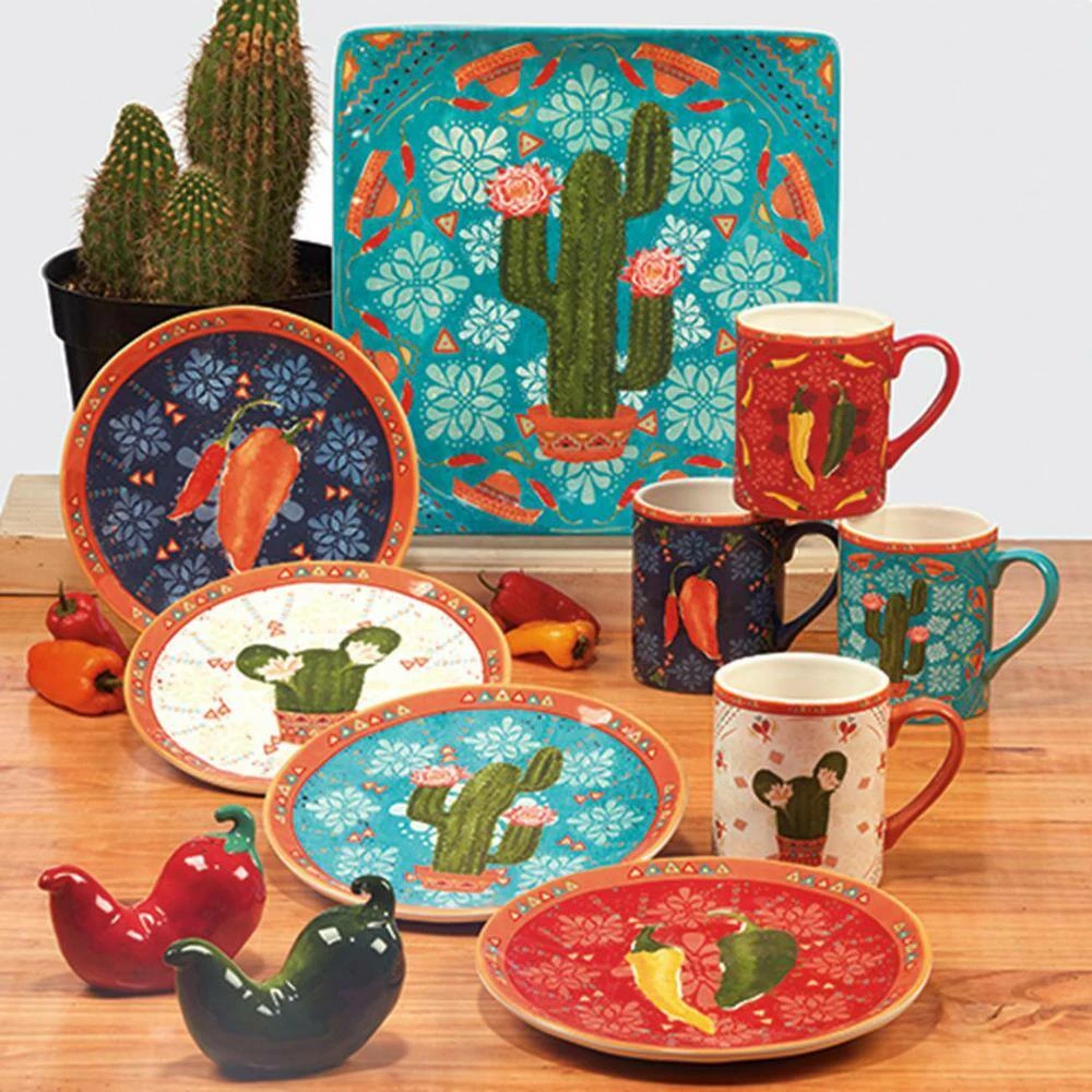 Have a party in your home year-round with Certified International’s “Fiesta” Set of 4 Mugs designed by artist Veronique Charron. The warm, bright colors and playful motifs of the Southwest decorate these 4 – 16 oz. mix and match ceramic Mugs. Be sure to get the matching dinnerware and serveware items to complete your festive table.
