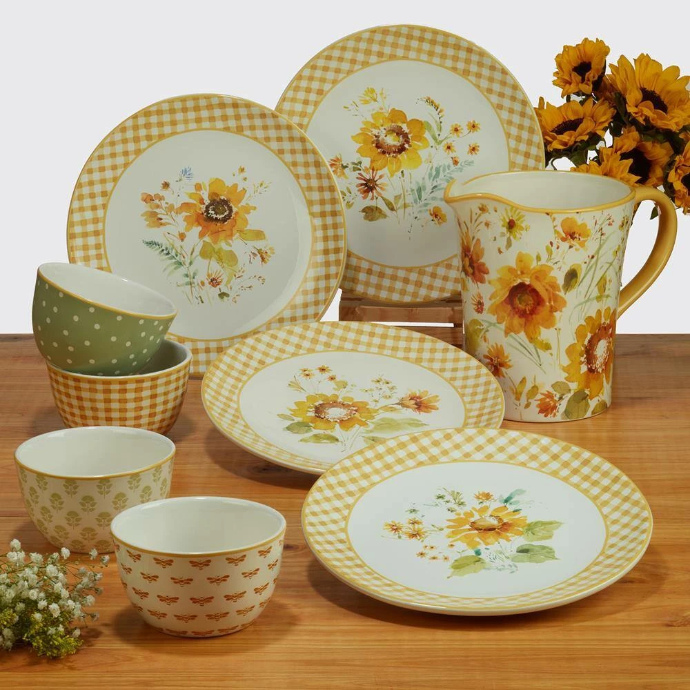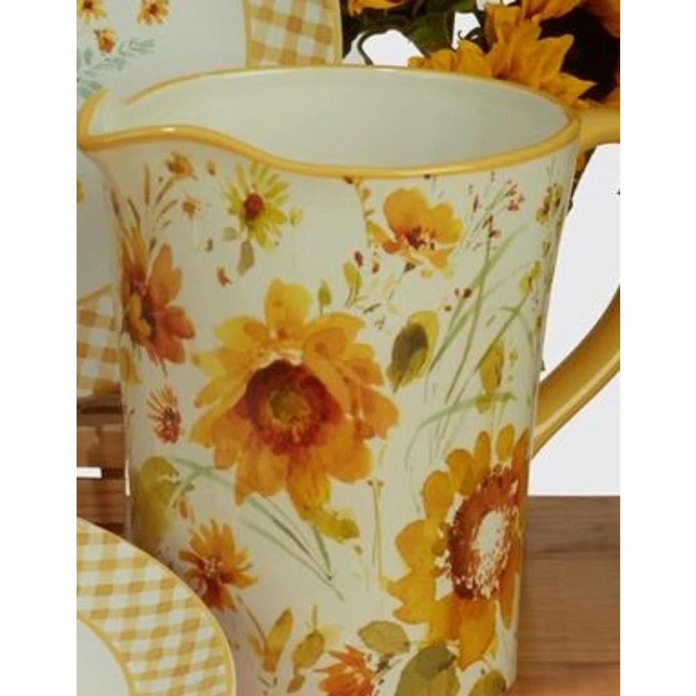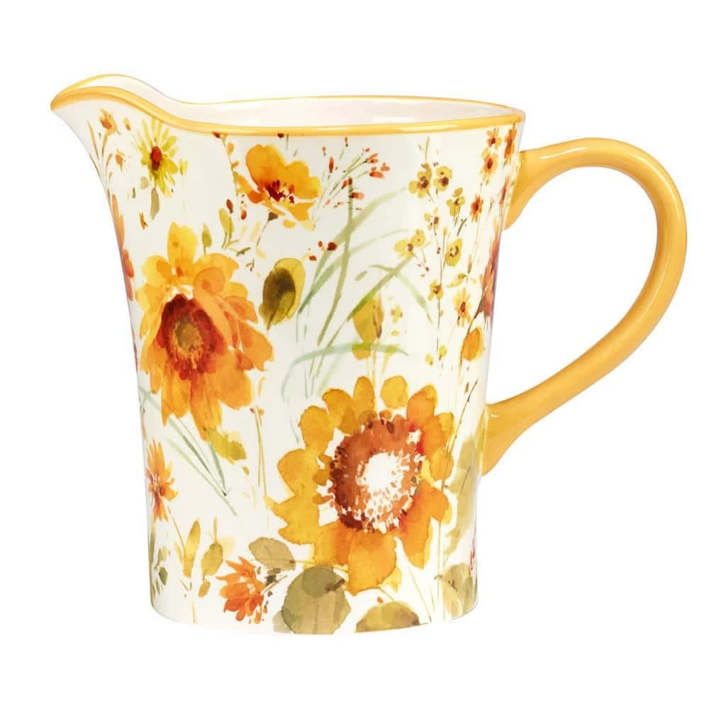 Beautiful watercolor sunflowers decorate Certified International’s “Sunflowers Forever” Pitcher. Designed by the popular artist Lisa Audit, this generous 3.5 qt. capacity ceramic Pitcher is great for serving your favorite beverage or as a decorative vase, to add a sunny touch to your home. Coordinating dinnerware, serveware, and storage are available.