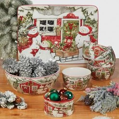 Snowman’s Farmhouse 14 in. Multicolored Earthenware Rectangular Platter by Certified International