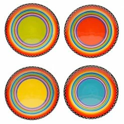The Tequila Sunrise 4-Piece 9 in. Salad and Dessert Plate Set from Certified International will showcase your personal culinary creations with it’s bold design. The hand painted pieces have a lively multi-colored striped motif and make any occasion a fiesta. Enjoy this Southwest-inspired design in an energetic pattern. A Nancy Green design.