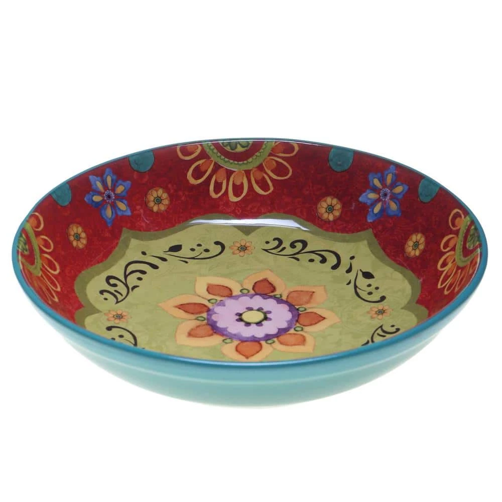 The Tunisian Sunset Collection Serving and Pasta Bowl from Certified International will brighten your table with vibrant colors. This collection features a variety of floral designs and bright colors to give your table a cheerful ambiance. This hand-painted earthenware is finished in a bright glazed finish perfect for all occassions. A Sue Zipkin Design.